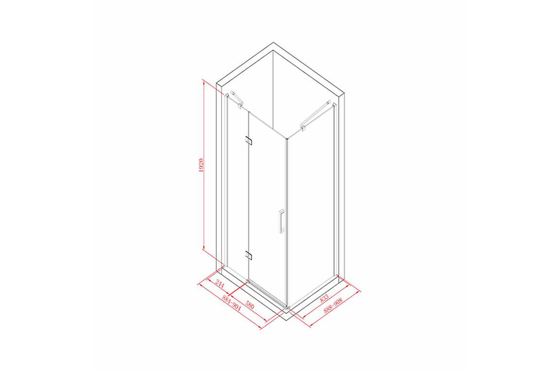 VIERKANTE CABINE SCHARNIERDEUR 90